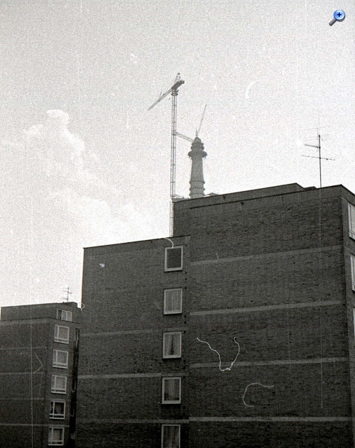 Und ich bin um 1978 durch die Amateurfunkprüfung gefallen (durch die einfache, ohne Morsekenntnisse) - so mit Pauken und Trompeten, dass der Prüfungsleiter meine Bögen, ohne Namensnennung (wusste ja eh jeder, von wem die ausgefüllt waren) als Negativbeispiel hernahm. Ich wechselte gerade vom Technischen Sachbearbeiter in der Mess- und Regeltechnik in's Kaufmännische. Die Vorbereitung kollidierte mit meinem Abschluß an der Wirtschaftsfachschule und meinem ersten führenden Job als kfm. Leiter, und das war wichtiger. War aber nicht schlimm. Um die Zeit wurde gerade der für's Publikum offene, 250mtr. hohe Fernsehturm ungefähr neben meiner Wohnung gebaut. Von da oben war 'ne Verbindung mit einem CB-Handfunkgerät von Köln in den Schwarzwald nichts Ungewöhnliches. Foto 1. Hälfte 1979, Kodak Pocketkamera.