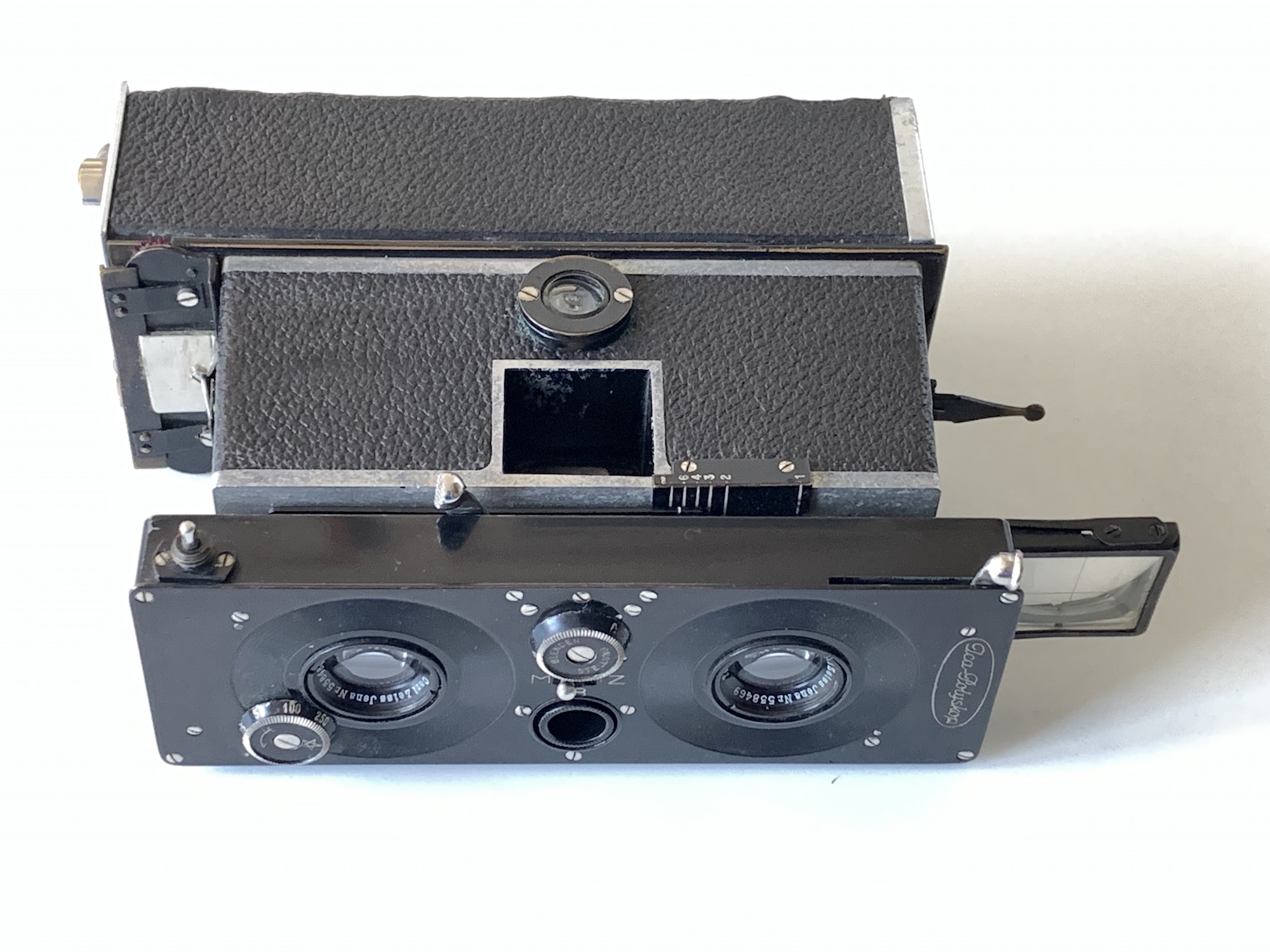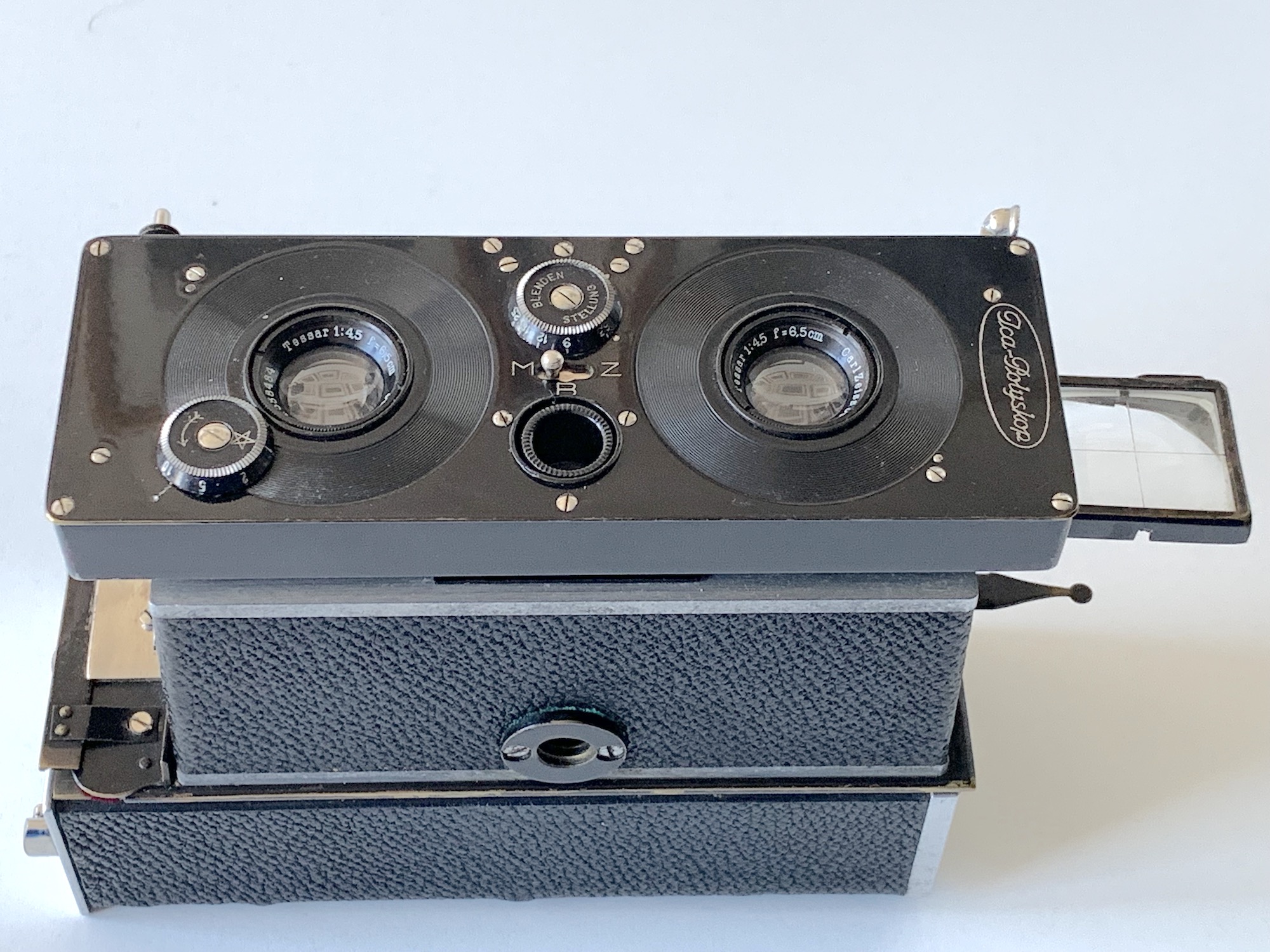 Die Bezeichnung 606/1 verweist darauf, dass ein Magazin verwendet werden kann; über einen Adapter können auch Einzelkassetten angeschlossen werden. Das gezeigte Exemplar ist mit zwei Tessaren 4,5/6,5 ausgestattet. Geändert hat sich auch die Schreibweise – Polyskop wird jetzt immer mit <k> geschrieben.