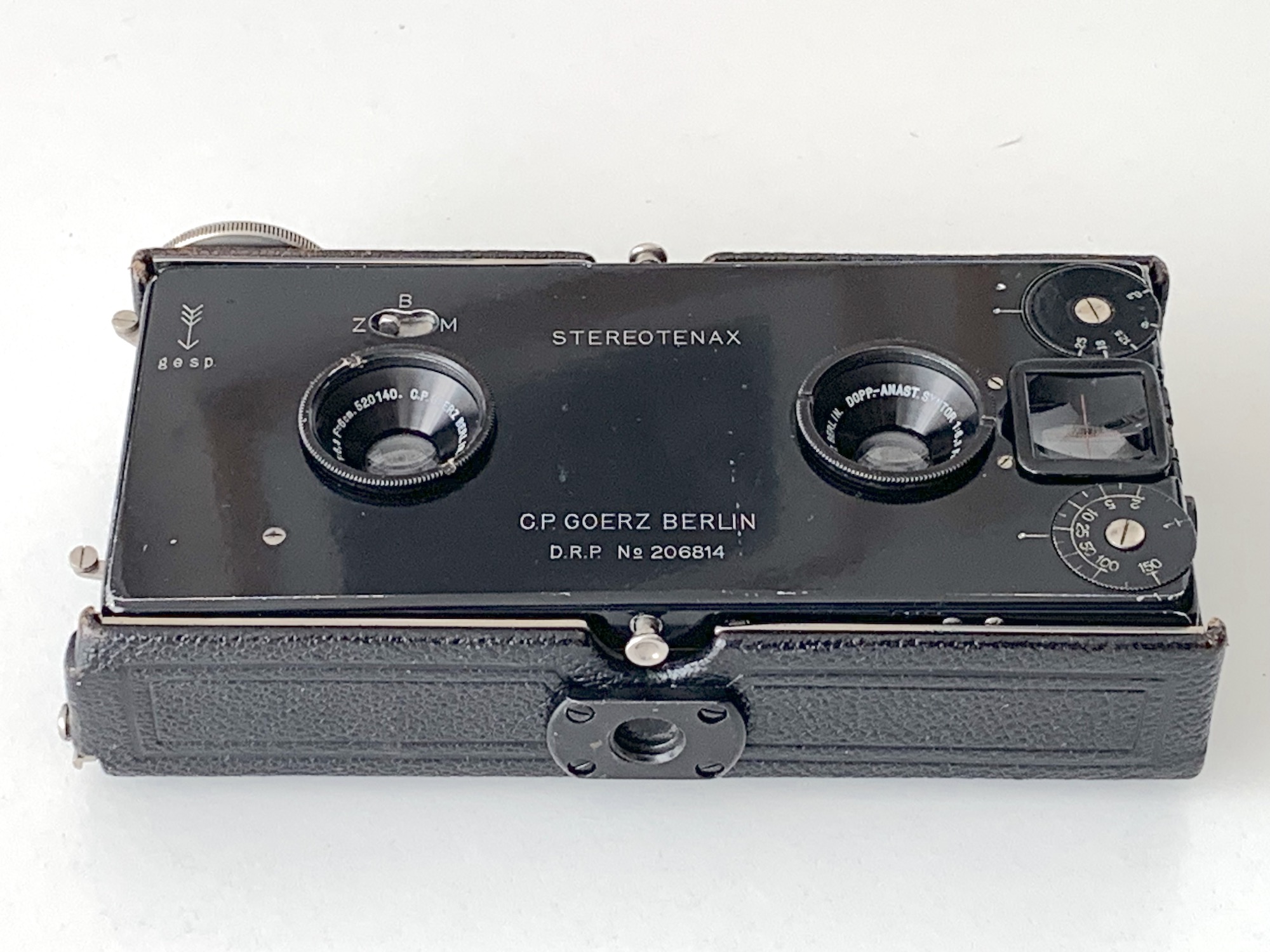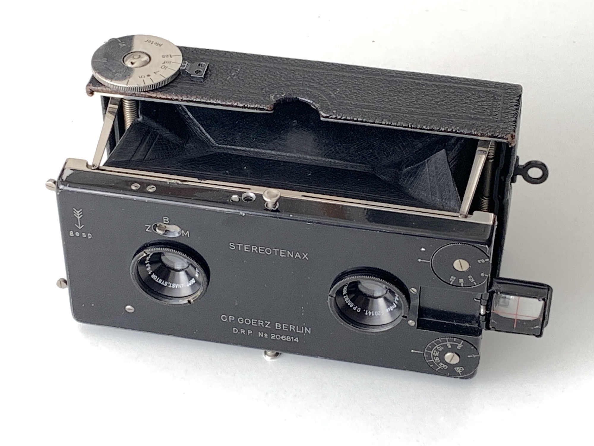 heute stelle ich eine faltbare Stereokamera des Berliner Herstellers C. P. Goerz vor. Tenax war Markenname zahlreicher Goerz-Modelle; lateinkundigen Käufern wollte man wohl signalisieren, dass diese Apparate dazu geeignet waren, Erinnerungen und Eindrücke festzuhalten (lat. tenax 'festhaltend‘, ‘hartnäckig'). Zum Programm gehörte auch eine Reihe kompakter Spreizenkameras in den Formaten 4,5x6, 6,5x9 und 4,5x10,7.