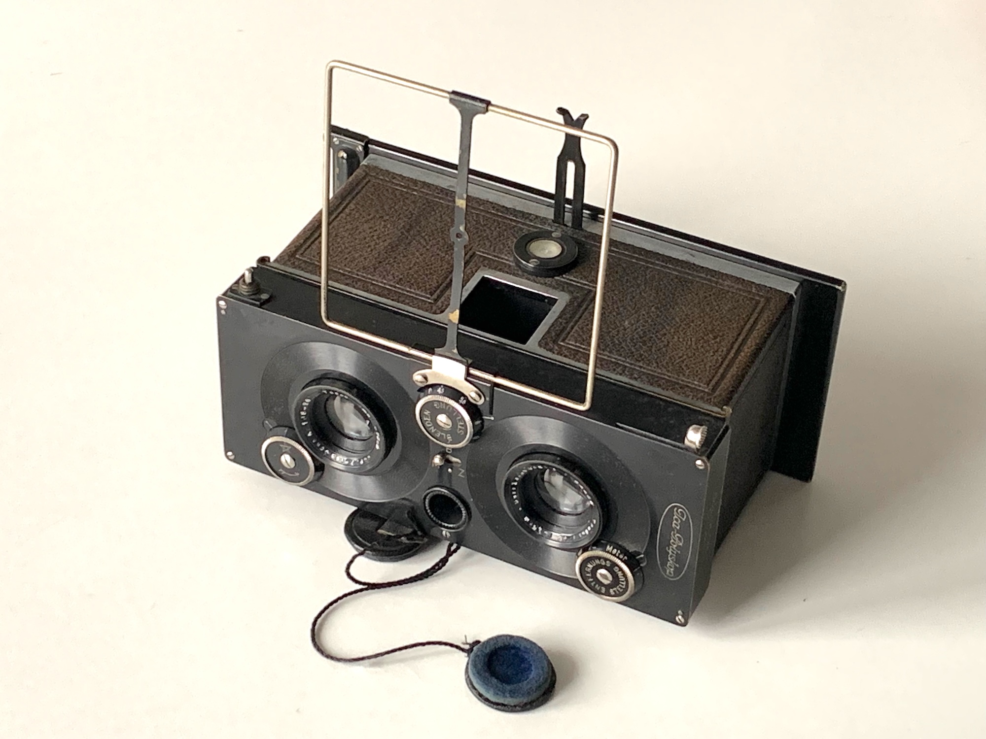Hier soll die letzte Ausführung des Polyskops 609 vorgestellt werden; die Kamera wurde unter der Bestell-Nr. 609/3 U im Zeitraum 1926 bis 1930 von Zeiss Ikon angeboten. Es handelt sich um eine Stereokamera mit starrem Gehäuse für Platten im Format 6x13. – An dieser Stelle ist darauf hinzuweisen, dass die Modell-Nr. 609 seit 1929 für die Polyskop-Kameras beider Formate verwendet wurde; die zuvor als Polyskop 607 geführte Kamera im Format 4,5x10,7 trägt im Katalog 1929 die Nummer 609/1, das 6x13-Modell die Nummer 609/4 (sofern mit Wechselkassette ausgestattet). Solche merkwürdigen Nummernänderungen, die die Bestimmung erschweren, gab es auch bei den Ikoflex-Modellen.