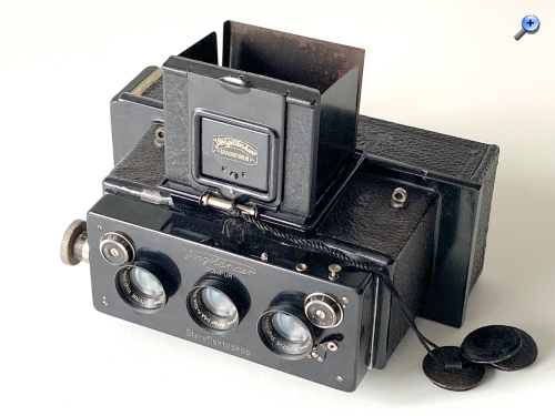 Es handelt sich um eine Spiegelreflex-Stereokamera für Platten 6x13 mit starrem Gehäuse. Ausgestattet ist sie mit drei Heliaren 4,5/75. Der Mattscheibensucher ist mit einem Klappenlichtschacht mit ausklappbarer Lupe versehen, unter der (Original-)Mattscheibe befand sich eine Libelle. (Beim vorliegenden Exemplar wurde die Mattscheibe offenbar einmal ausgetauscht.) Für Aufnahmen aus Augenhöhe kann ein Rahmensucher aufgeklappt werden.