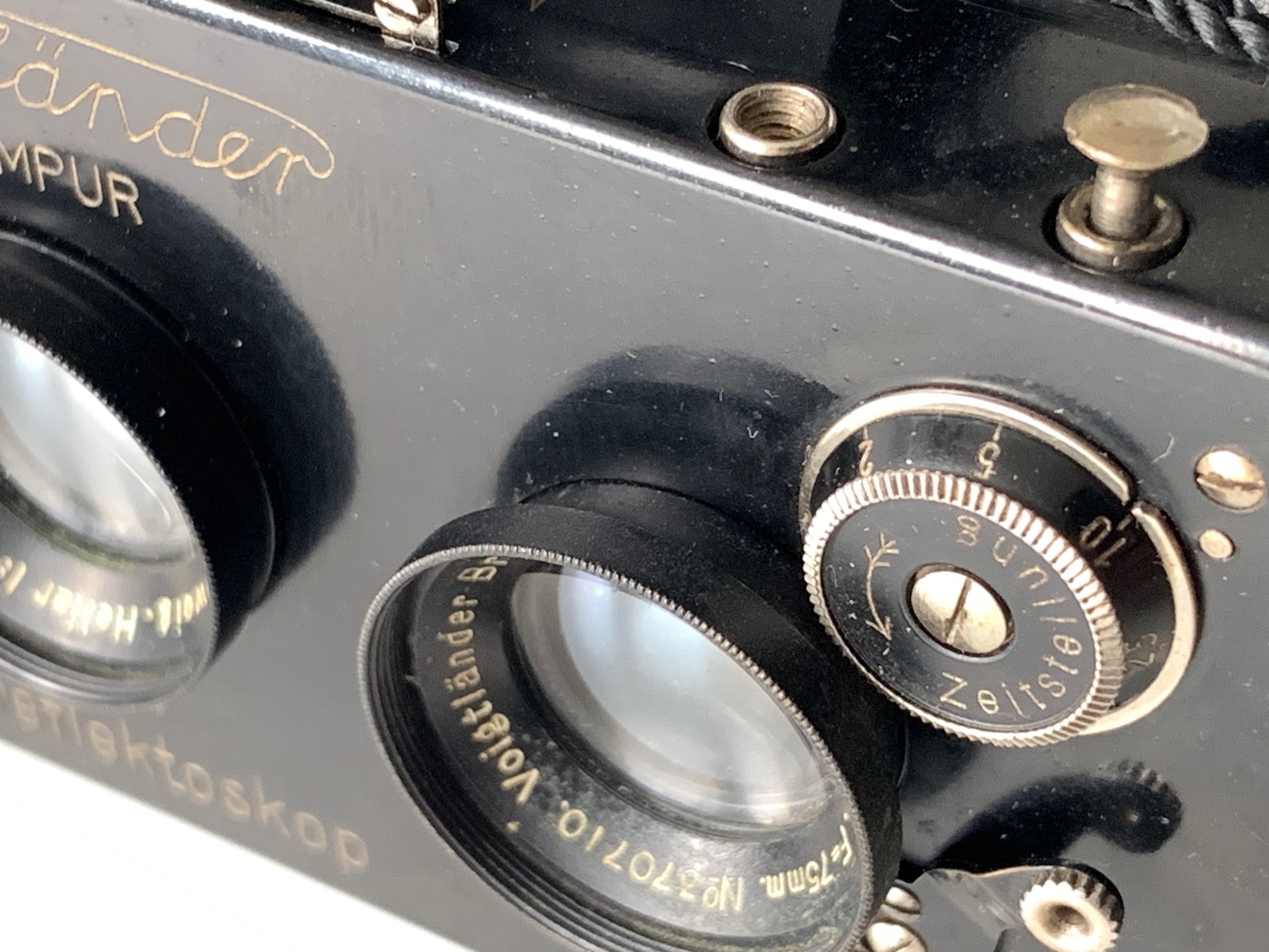 unter der Bezeichnung Stereflektoskop bot Voigtländer seit 1913 Stereokameras mit Spiegelreflexsucher an, also dreiäugige Kameras. Zunächst gab es das Modell nur im kleinen Stereoformat 4,5x10,7, erst 1925 folgte das Format 6x13. Die einzelnen Modelle dieser Reihe lassen sich anhand ihrer konstruktiven und gestalterischen Merkmale unterscheiden, ausführlich dargestellt im Voigtländer-Report von Prochnow. Hier sei das zweite Modell des Stereflektoskop 6x13 vorgestellt, das 1928 auf den Markt kam (Prochnow PR 2924).