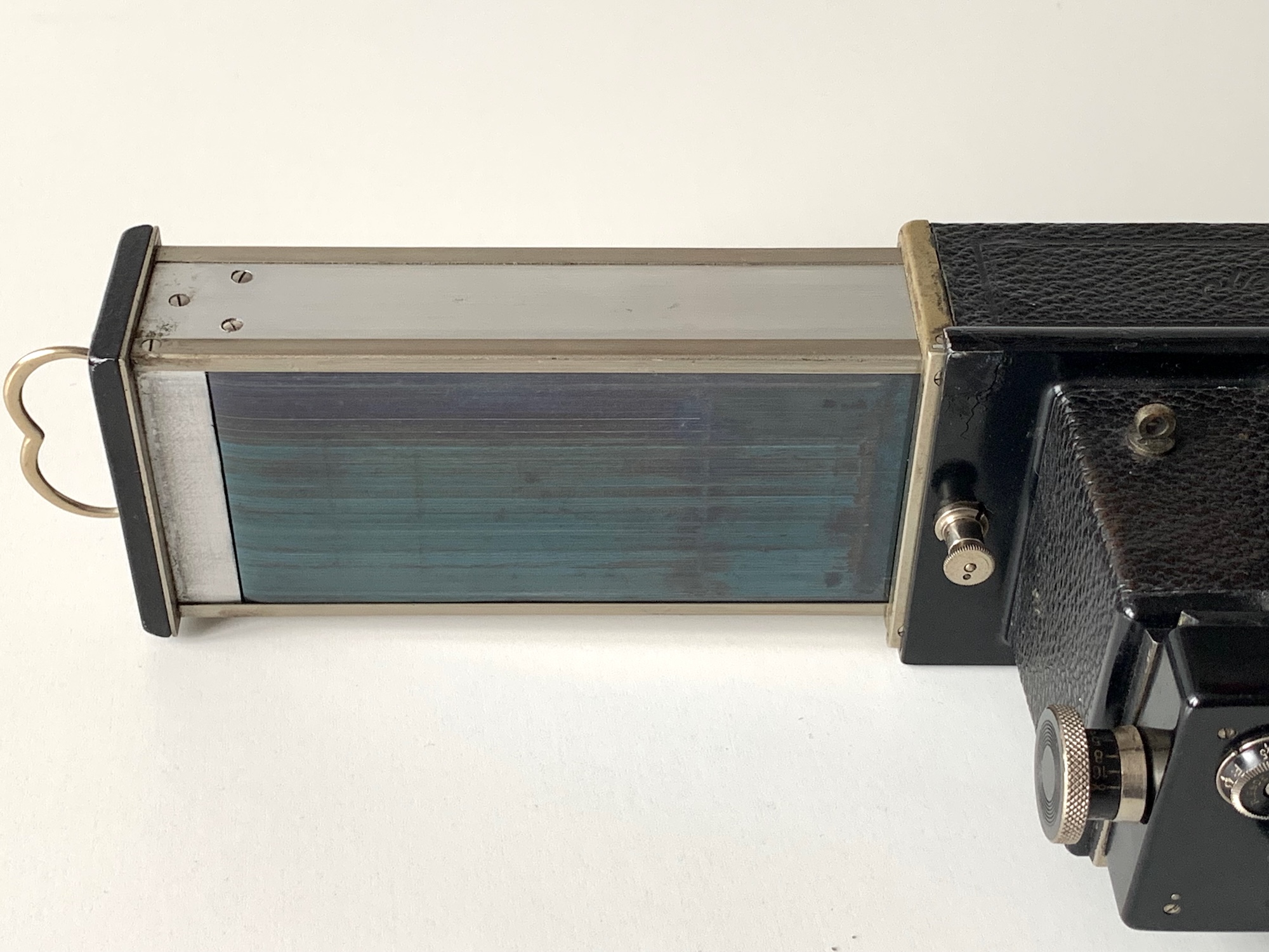 Die Kamera ist, wie in dieser Klasse üblich, mit einem Schnellwechselmagazin ausgestattet, das 12 Platten enthält; sie werden durch Betätigung des Auszugs gewechselt, ein Zählwerk informiert über den Aufnahmevorrat. Alternativ können auch Einzel- oder Filmpackkassetten oder ein Mattscheibenrahmen angeschlossen werden, dafür ist ein Adapter erforderlich. Durch den Spiegelreflexsucher hat aber der Gebrauch einer Mattscheibe an Bedeutung verloren. Ein Rollfilmmagazin war nicht lieferbar.