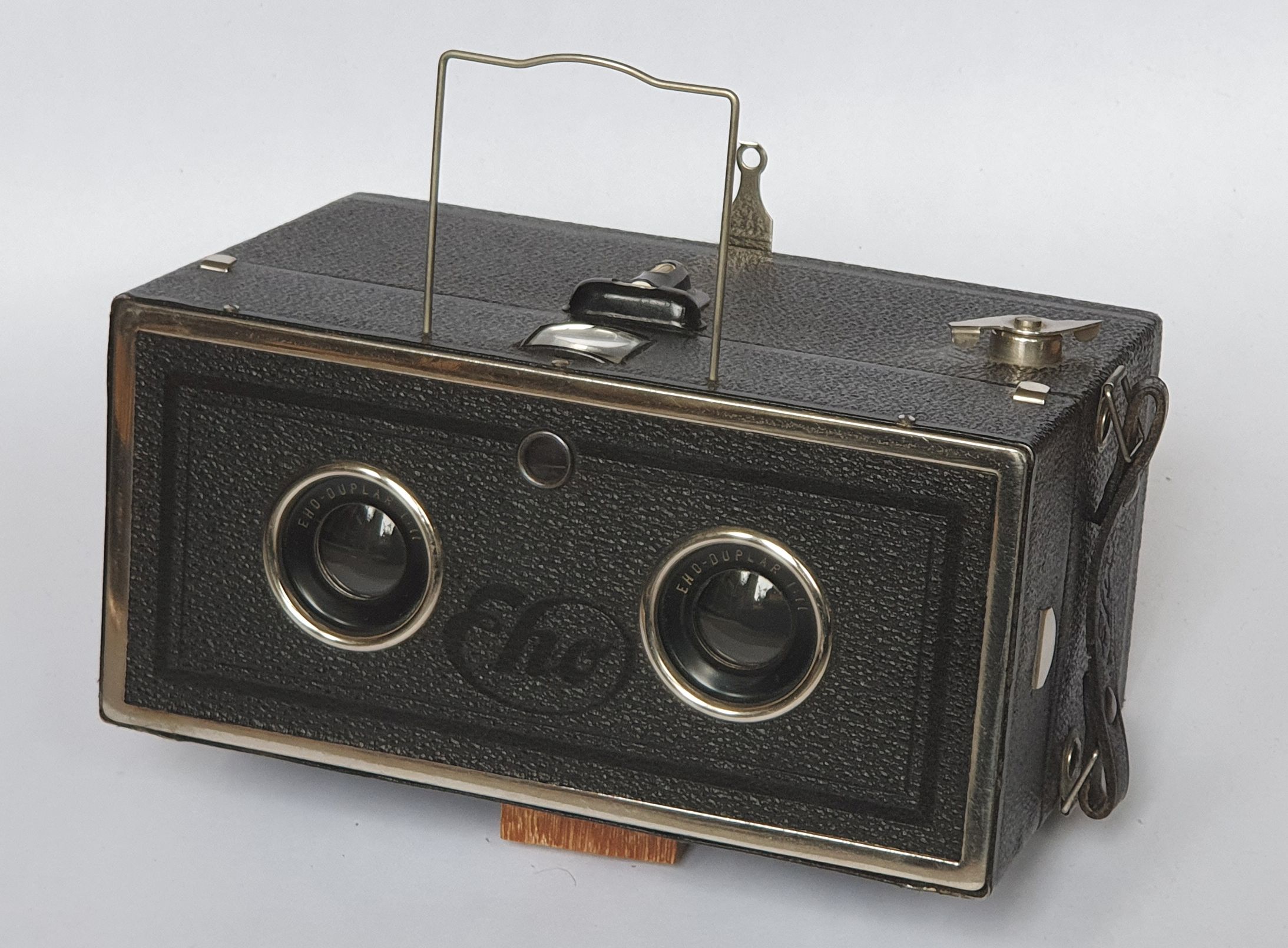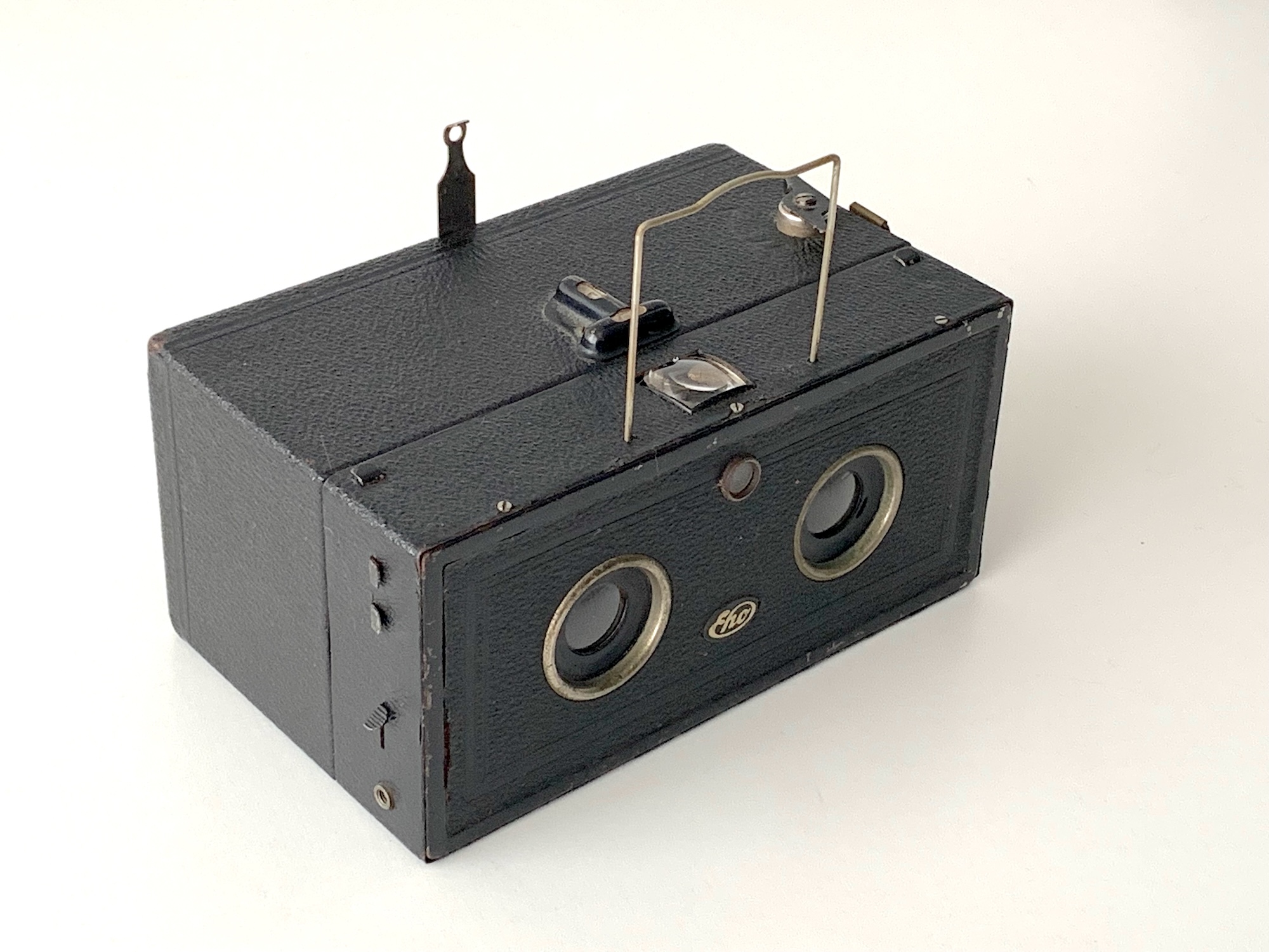 die heute vorzustellende Kamera ist eigentlich ein Anachronismus: Seit Beginn der 1930er Jahre ließ das Interesse an Stereokameras nach, was sich u.a. daran zeigt, dass Franke & Heidecke die Produktion ihrer Heidoscope 1934 einstellte und Zeiss Ikon nach dem Abverkauf der Polyskope keine neuen Modelle mehr baute. Ungeachtet dieses Trends brachte die Fa. Eho (Emil Hofert; seit 1935 Altissa) aus Dresden 1933/34 diese preiswerte Stereo-Boxkamera auf den Markt.