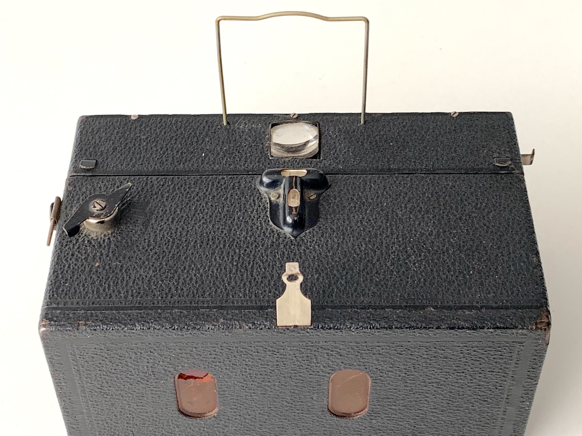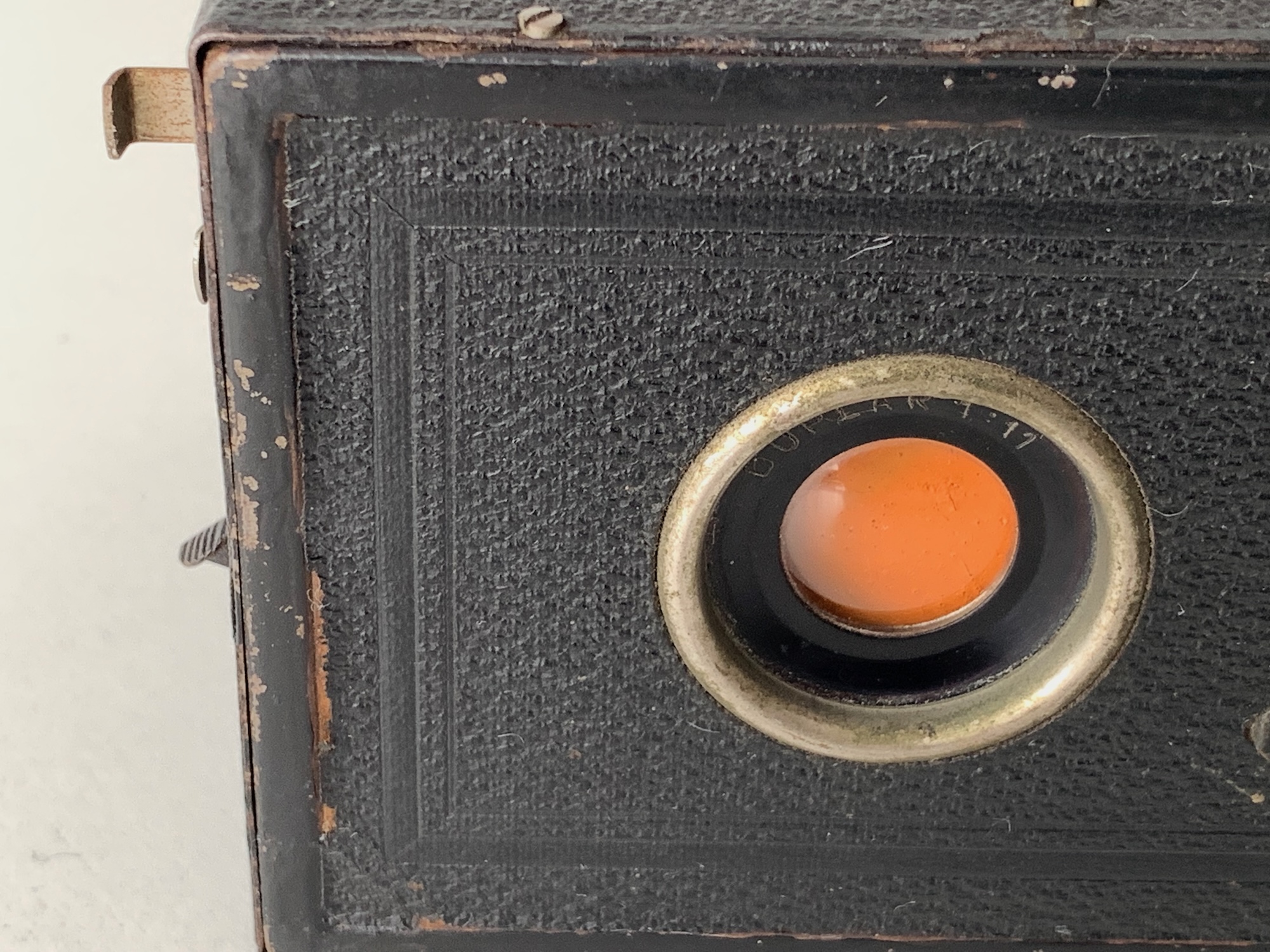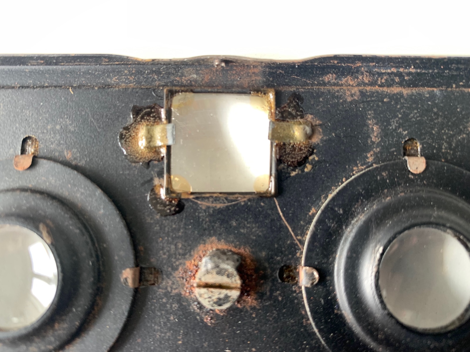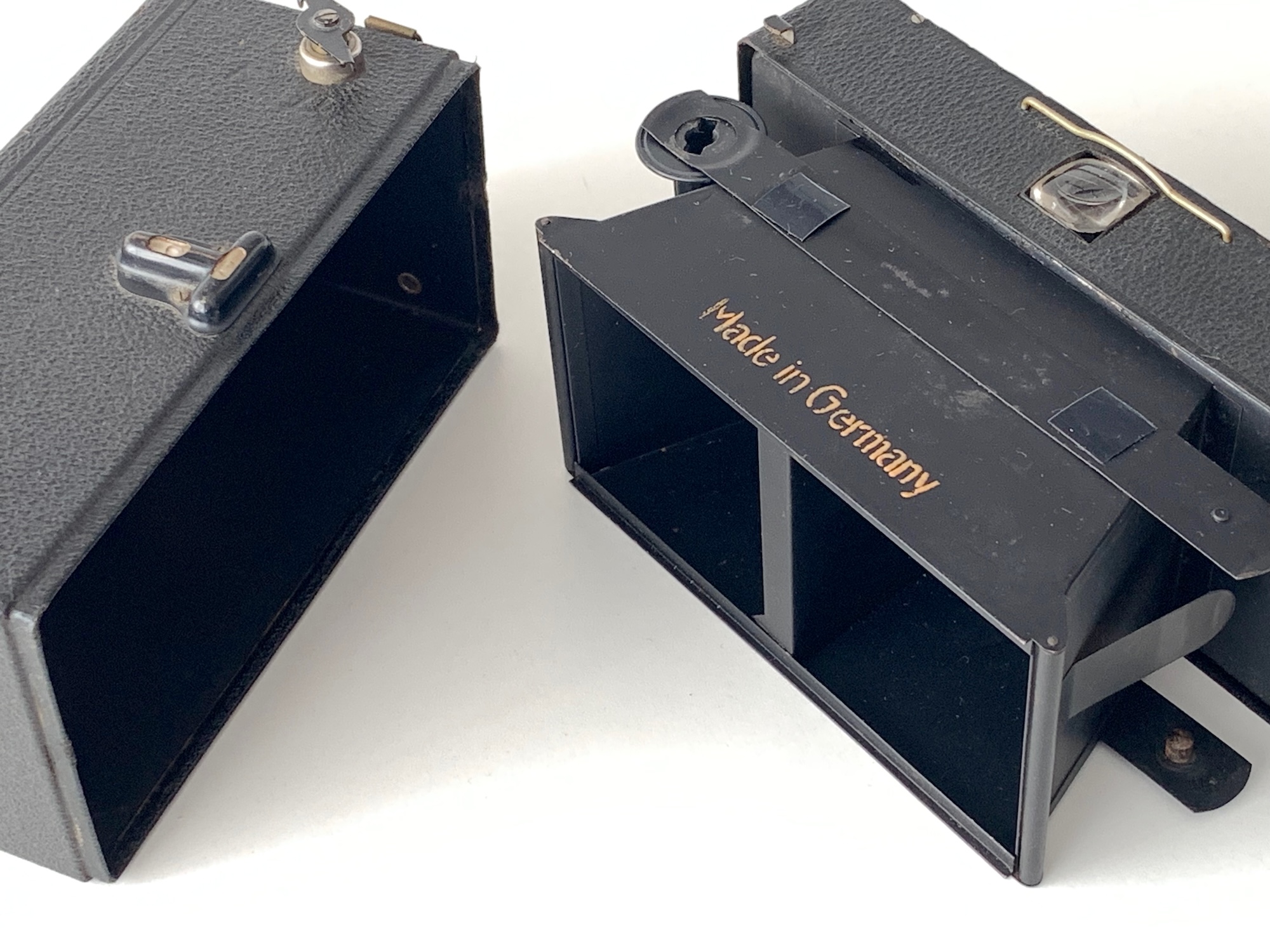 Ich hab die Zeiten nachgemessen. Die Wiederholungsgenauigkeit reicht von 1/19 bis 1/26 s. Der rechte Verschluss läuft eher etwas länger, kommt später und setzt sich gelegentlich gar nicht in Bewegung – kann man aber vermutlich nachbessern. Zum Fotografieren nicht gerade das Präzisionsinstrument. Angesichts des Erhaltungszustands nach knapp 100 Jahren könnten die Vorbesitzer das ähnlich gesehen haben, um die Kamera daraufhin ganz unten im Schrank zu deponieren. Vielleicht kam auch der 2. WK dazwischen oder irgendeine andere Geschichte.