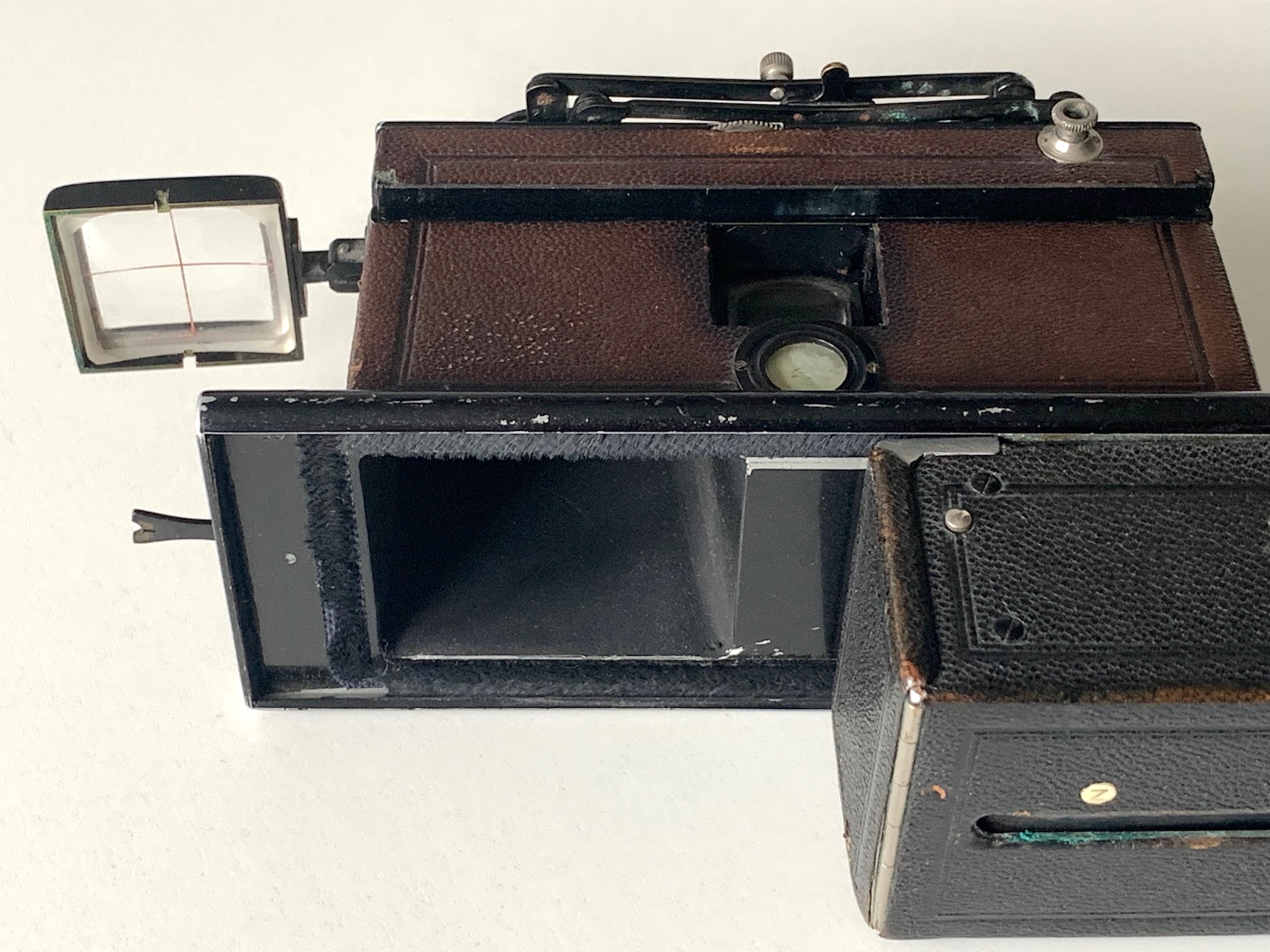 Das Stereofotoskop von 1922 wiederum (--> https://blende-und-zeit.sirutor-und-comp...5&thread=43) ist ein eigenständiges, einfacher ausgestattetes Modell ohne Entfernungseinstellung, das das Stereoprogramm nach unten abrunden sollte; es ist also keine direkte Fortsetzung der Modellreihe, wie es der Artikel in camera-wiki nahelegt.