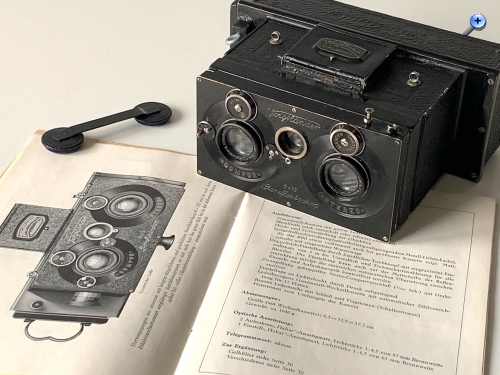 Letzteres freut natürlich den Sammler; die kuriose und interessante Kamera ist nicht sehr häufig. Die späteren Versionen – das zweite Modell erschien 1928 (--> https://blende-und-zeit.sirutor-und-comp...5&thread=47) sind leichter zu finden. Größere Unterschiede zwischen Voigtländer und Franke & Heidecke bestehen, soweit ich sehe, mit den späteren Modellen nicht mehr – allerdings machte Franke & Heidecke sich auch im Stereobereich den Rollfilm zunutze und bot Rollfilmmagazine und das 'Roll-Heidoscop' --> Rolleidoscop an, während Voigtländer an der Platte festhielt.