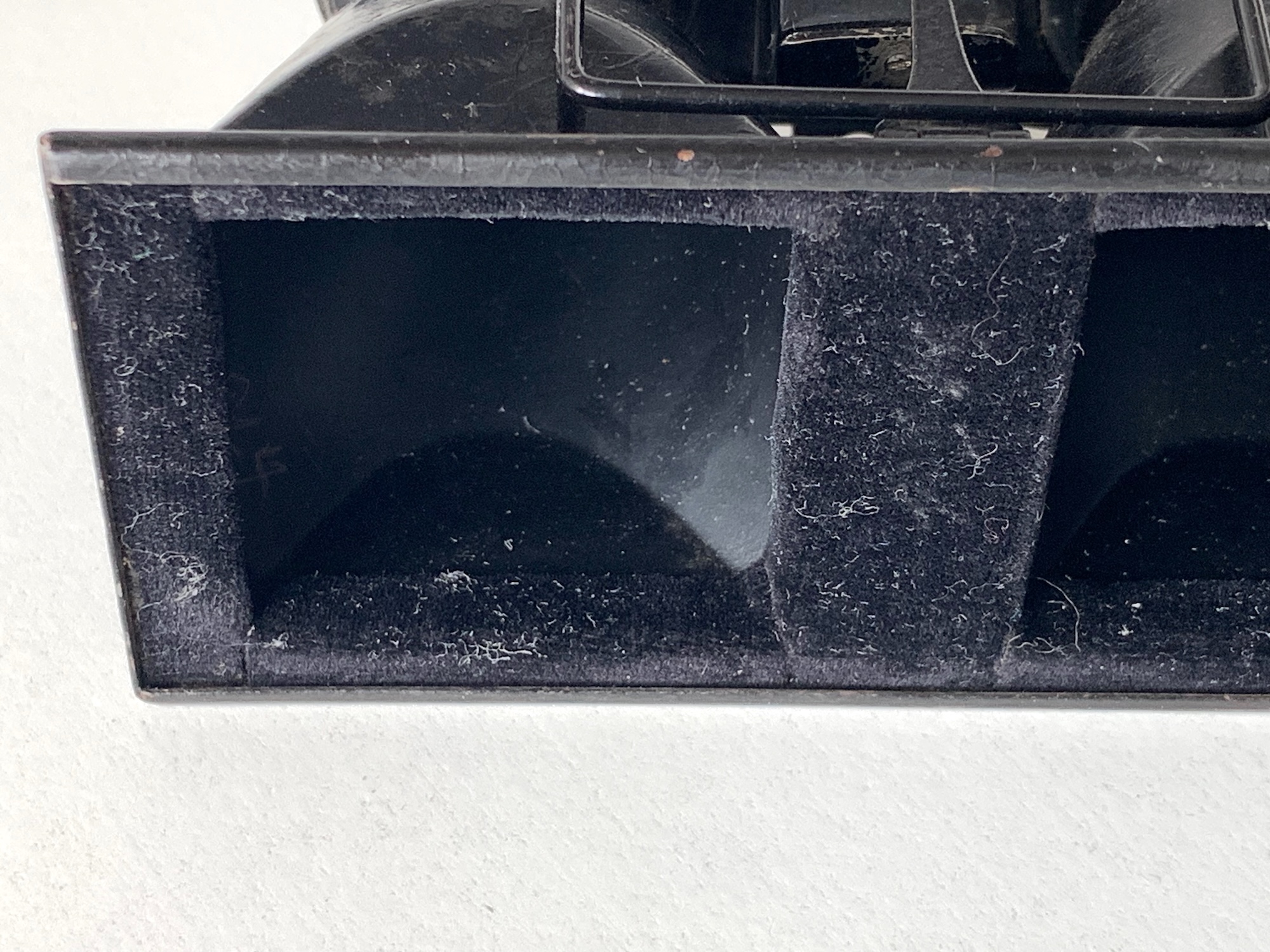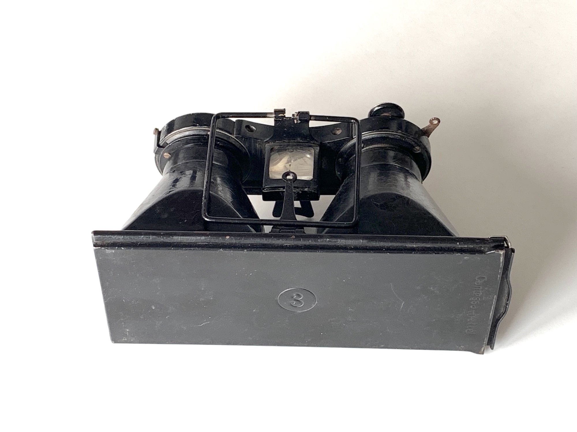 Ich nehme an, dass solche einfachen Kameras mit hauptsächlich mit bedienungsfreundlichem Filmpack oder mit Einzelkassetten genutzt wurden. Der Falz ist aber kompatibel mit dem der anderen (späteren) Stereokameras von Contessa Nettel; man könnte also auch ein Plattenmagazin anschließen, das ich für das Bild vom Citoskop geborgt habe.