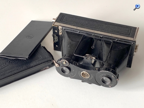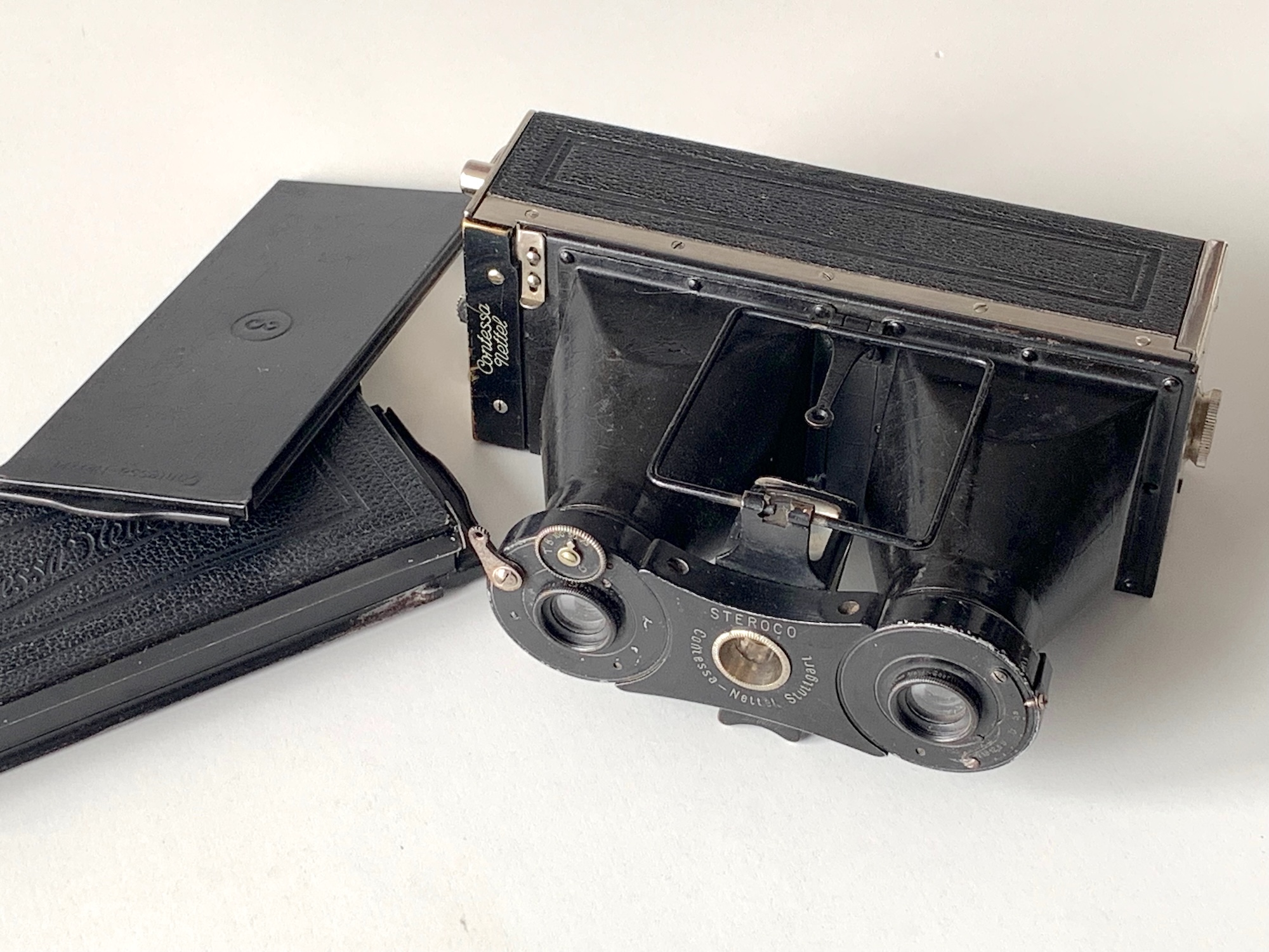 Steroco war die Bezeichnung einer Baureihe einfacher Stereokameras von Contessa Nettel, die Modell-Nr. lautete 305. Ich stelle hier ein Exemplar der frühen Ausführung vor, die seit etwa 1920 angeboten wurde.