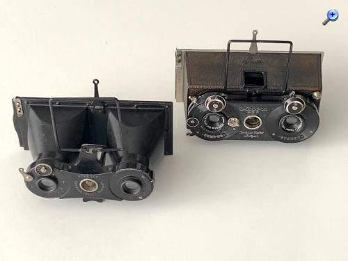 Die Steroco wurde später verbessert und aufgewertet; die Kamera erhielt spätestens 1924 ein einteiliges Gehäuse aus beledertem Holz, ein Stativgewinde sowie eine Entfernungseinstellung und war wahlweise auch mit Tessaren in Compur ausgestattet; diese späte Ausführung schaffte es dann auch für kurze Zeit ins Zeiss Ikon-Programm (--> https://blende-und-zeit.sirutor-und-comp...5&thread=17). Die späte Version ist nach meiner Wahrnehmung wesentlich häufiger.