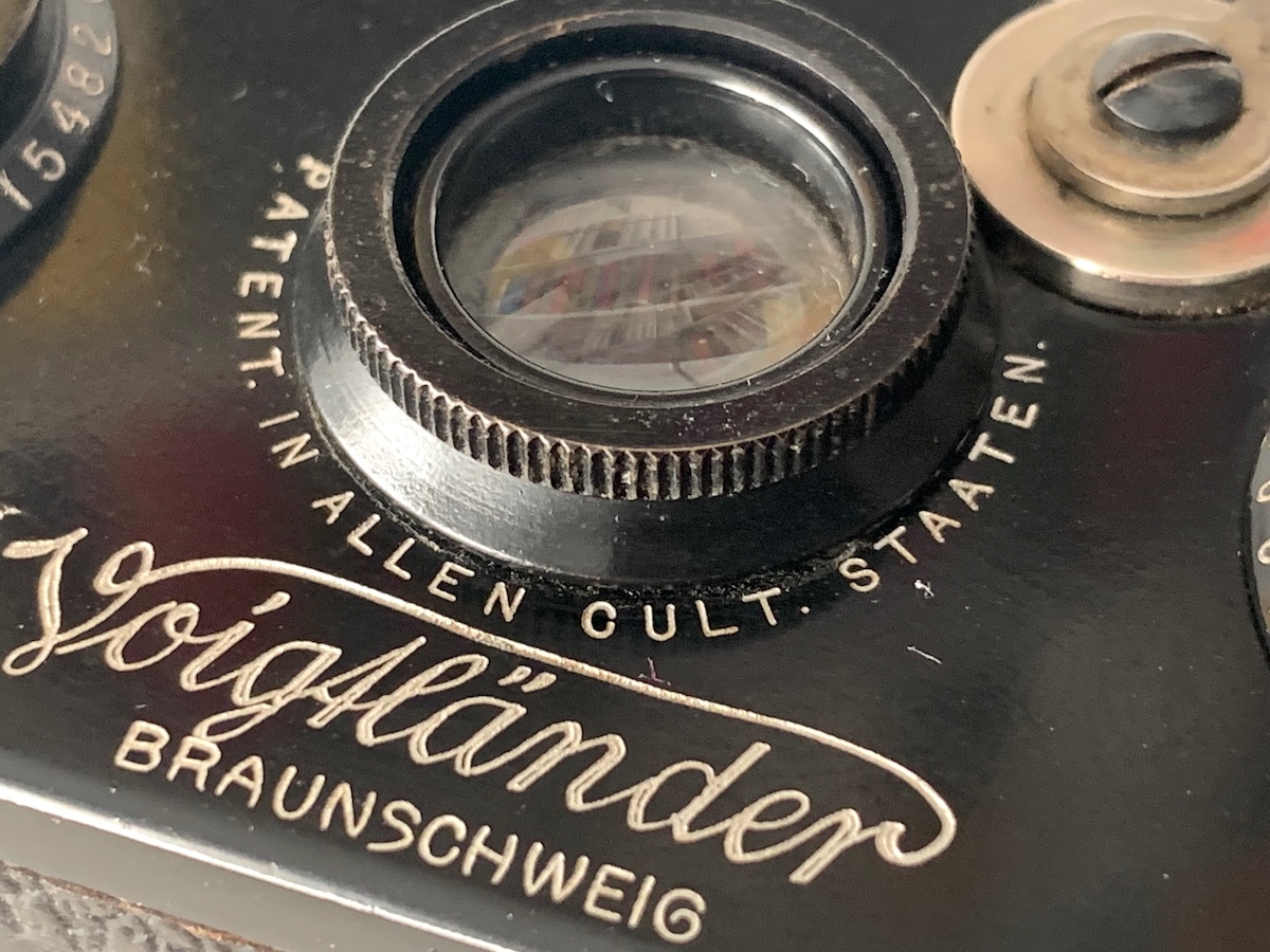 Beim Verschluss handelt es sich um einen von Voigtländer konstruierten Zwischenlinsenverschluss, die Patent-Nr. 260892 ist prominent auf der Frontplatte angegeben. Man beachte den Hinweis „Patent[iert] in allen Cult[ur-]Staaten“.