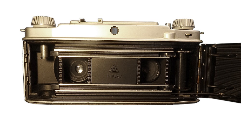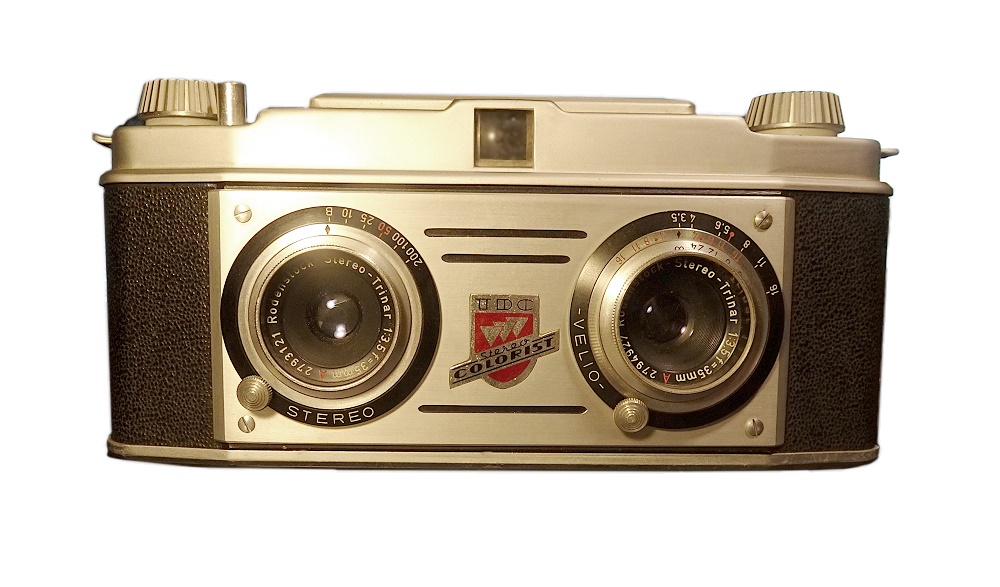 • Besonderheiten, Sonstiges: Stativgewinde, Doppelbelichtungssperre, Drahtauslöser, Auslösesperre, Vollmetallgehäuse. "Echte" Stereophotokamera