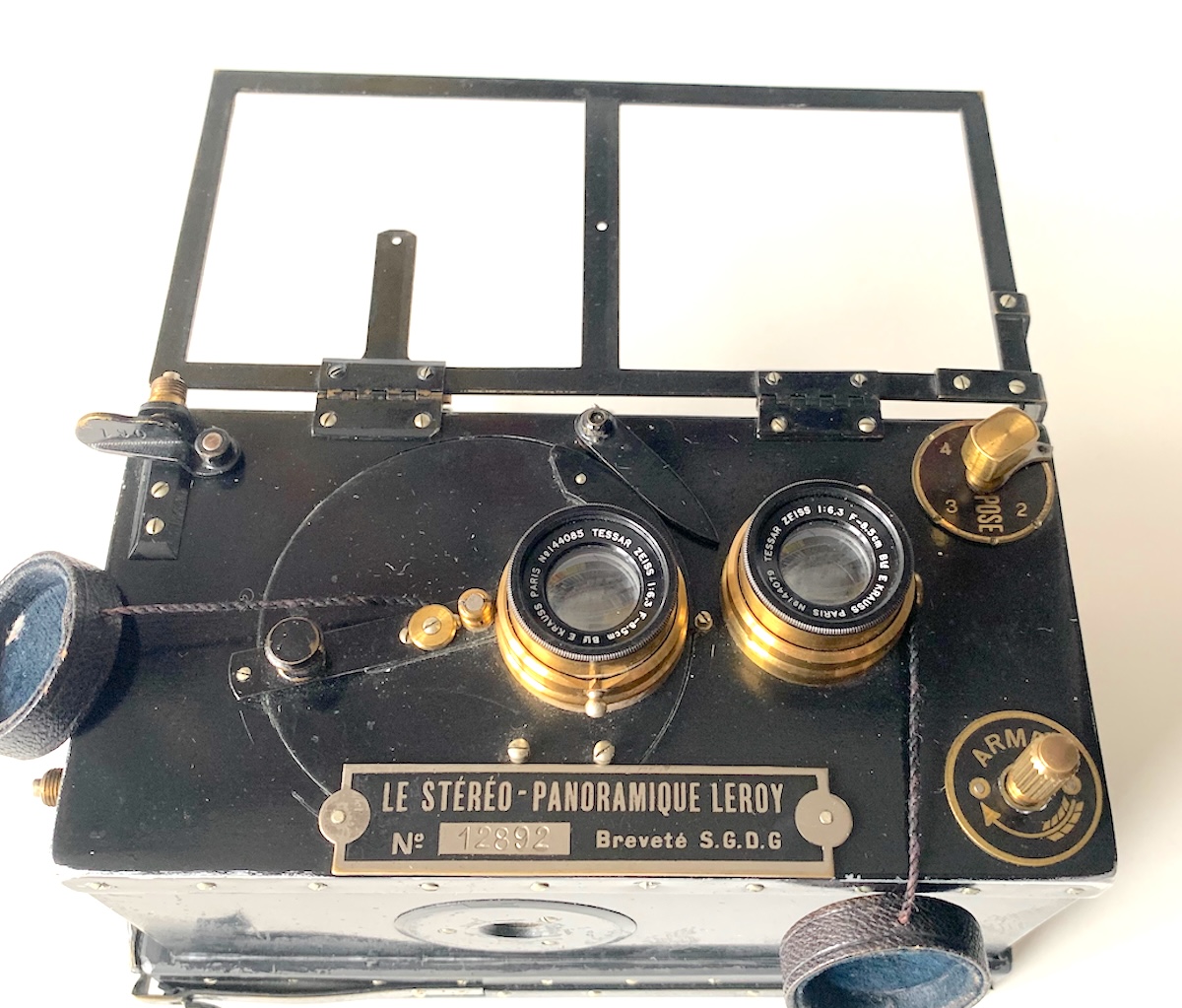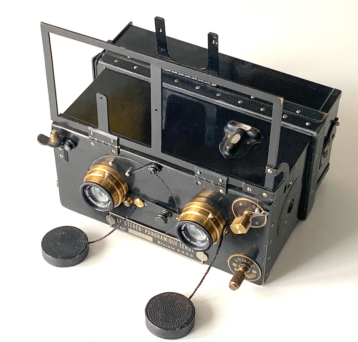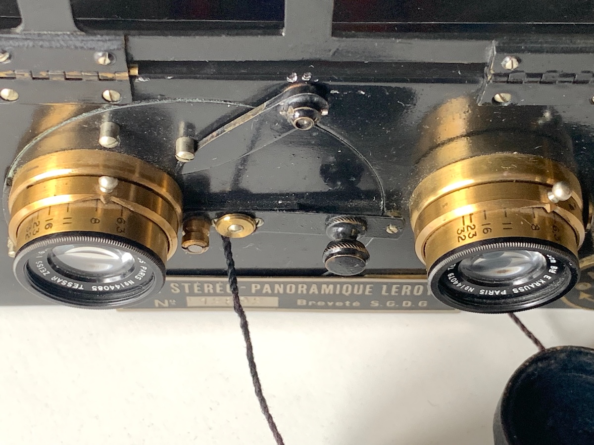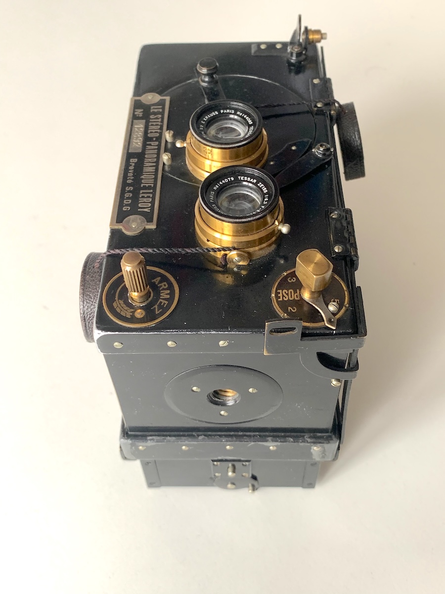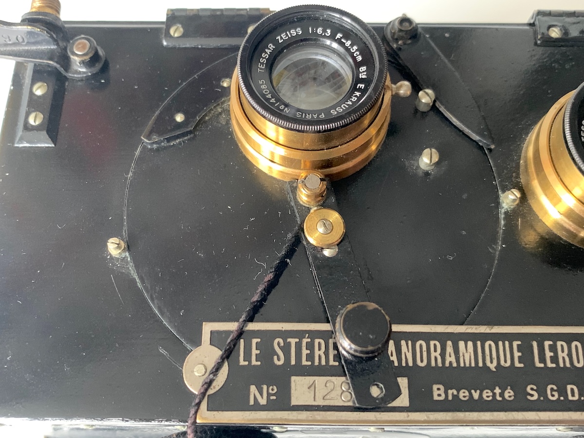 die Stéréo-Panoramique von Lucien Leroy weicht konstruktiv von den zahlreichen anderen Stereokameras ab, wie schon ein Blick auf die Frontplatte verrät.