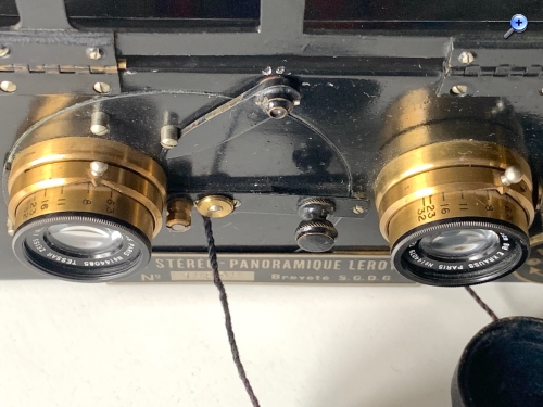 Die Kamera kam um 1904 auf den Markt, das Patent stammt von 1903 (Details hier: https://stereoscopyhistory.net/stereo-panoramique-leroy/); sie war seit 1913 das einzige Produkt von Leroy, nachdem die zuvor gebaute Stéréocycle aus dem Programm genommen worden war. Gebaut wurde das Modell bis etwas 1932; die Firma wurde abe schon 1920 von Émile Guerin übernommen (https://stereoscopyhistory.net/emile-guerin/), weshalb beispielsweise im Katalog von Francesch, Bovis & Boucher (Nr. 1399) Guérin als Hersteller genannt wird. Den bekannten Seriennummern nach zu urteilen, muss eine fünfstellige Anzahl von Exemplaren gebaut worden sein. Im Laufe der langen Bauzeit gab es eine Reihe kleinerer Änderungen, wie zahlreiche Abbildungen belegen.