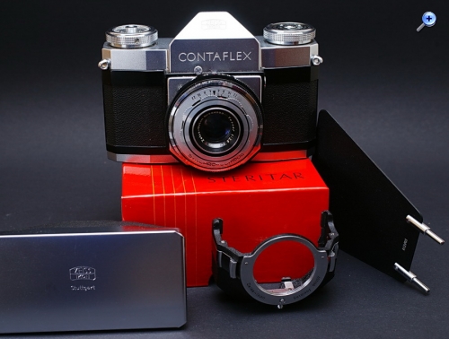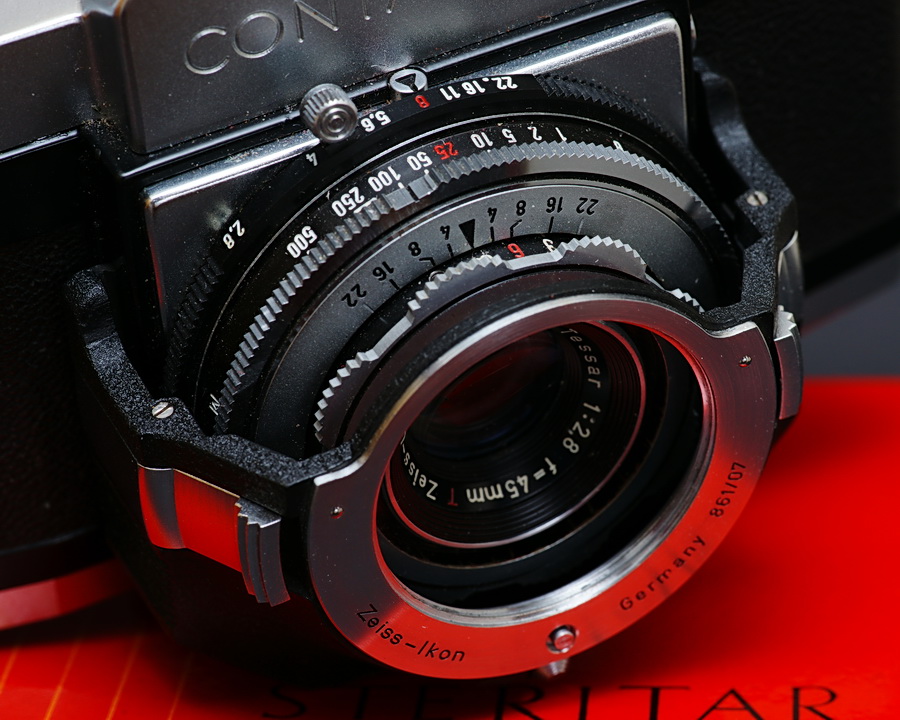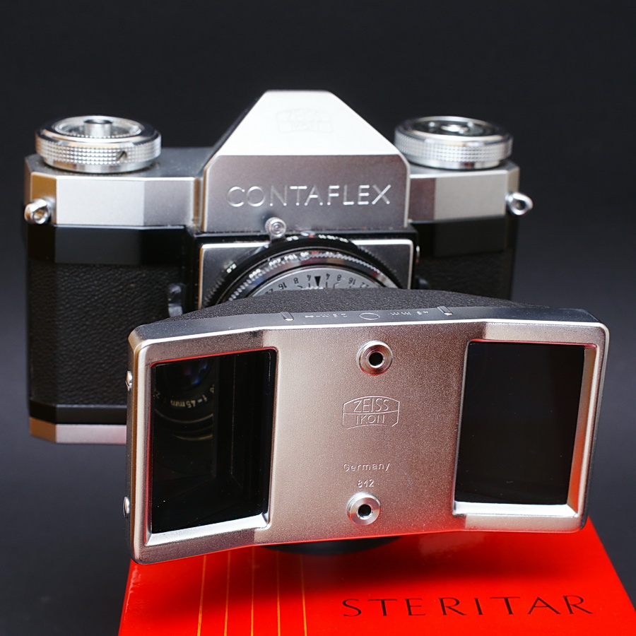 an einer Sony A6x00 mit Sigma 30mm/2,8 funktioniert der Stereovorsatz gut. 30mm an APS-C entspricht 45mm am Kleinbildformat, also genau der Brennweite der Contaflex I. Hier ein Blick auf eins meiner Spielzeuge.