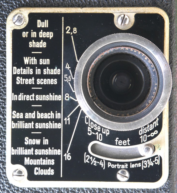 Die Frontplatte mit der Belichtungstabelle ist das offensichtlichste, die ´Sprechende Scala´ wie sie die Werbung nannte. Die Ausführung in mehreren Sprachen war für die Fertigung ungünstig, deshalb die Änderung in international verständliche Piktogramme. Eine Frontplattenauswahl: