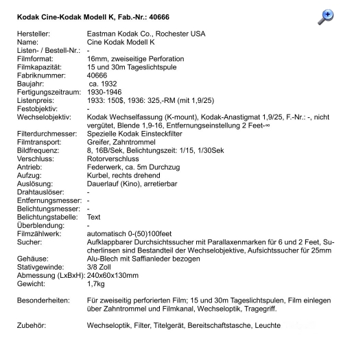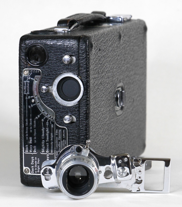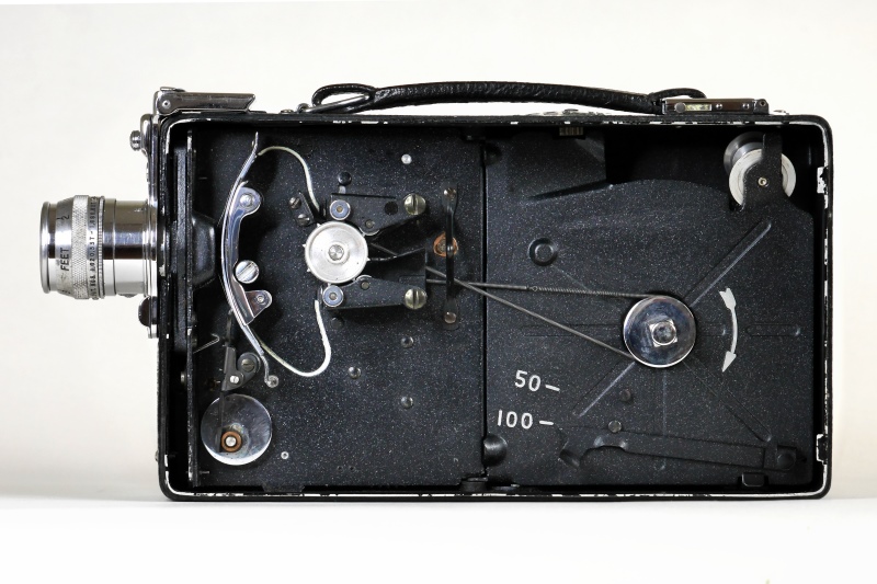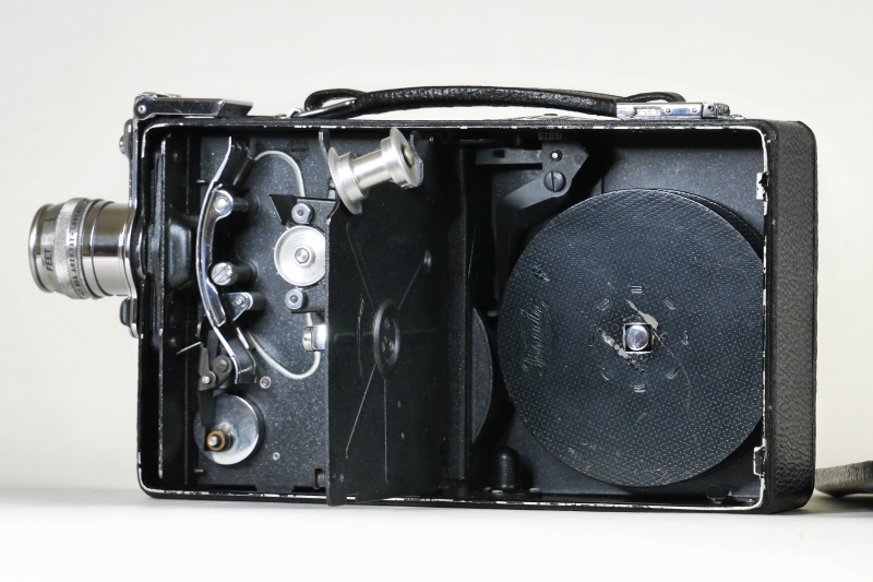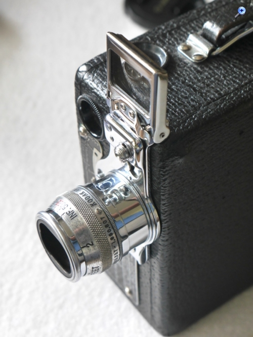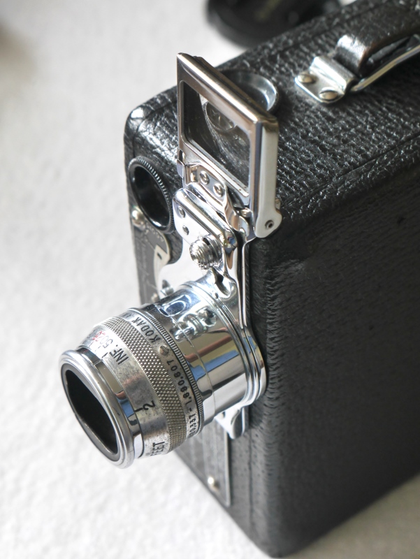 Eine der Kameras die ich gern in die Hand nehme, ist die Cine-Kodak K für 16mm-Film. Sie entspricht in ihrem Aufbau der Cine-Kodak B und ähnelt dem kleinen Vorläufermodell BB.