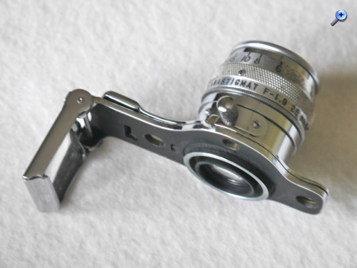 Bei der später auf den Markt gekommenen Magazin-Kodak (wird noch vorgestellt) hat man eine andere, elegante Lösung gefunden, ein im Griff integrierter Multifokalsucher.