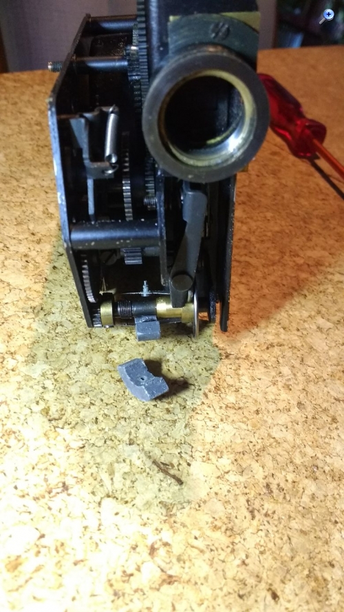 Hallo, habe die Kamera, ca von 1937, heute auf dem Flohmarkt gekauft. Dort hatte ich sie geprüft, sie lief einwandfrei. Zu Hause angekommen wollte ich sie noch einmal starten, leider tut sich nichts mehr beim Betätigen des Startknopfes. Die Feder ist ziemlich fest gespannt. Was kann da blockieren? Zerlegen mit gespannter Feder ist wohl nicht ratsam...